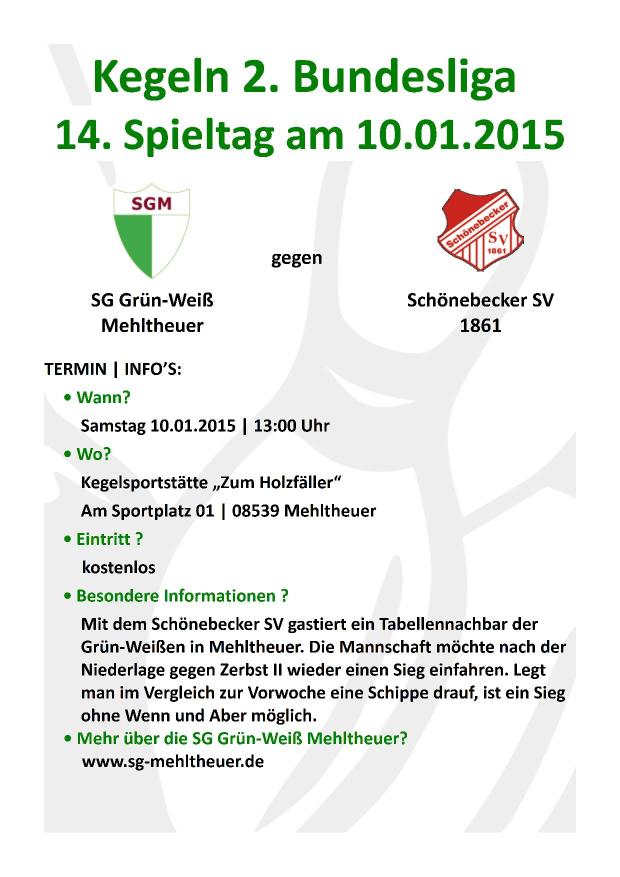 11 Spiele, 10 Siege. Diese beeindruckende Bilanz konnten die Kegler der SG Grün-Weiß Mehltheuer auch im Jahre 2013 fortsetzen. Gegen den KSV Freital gelang den Vogtländern ein 5377:5620 Sieg mit neuem Mannschaftsbahnrekord.